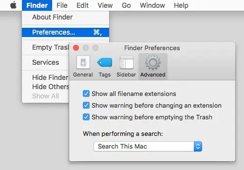 defaults write com.apple.finder AppleShowAllFiles YES - Nhấn "return" và khởi động lại Finder bằng cách giữ ⌥ Rclick lên icon Finder > Relaunch