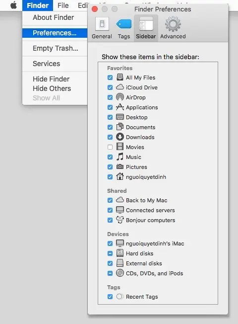 - Để gom các cửa sổ Finder về 1 cửa sổ có nhiều Tab: Windows > Merge All Windows