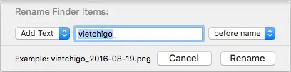 - add text: Thêm chữ vào đầu hay cuối tên file