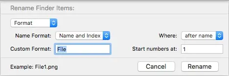 - format: Bỏ tên file hiện tại. Thêm tên file mới và số thứ tự (vào trước hay sau tên file)