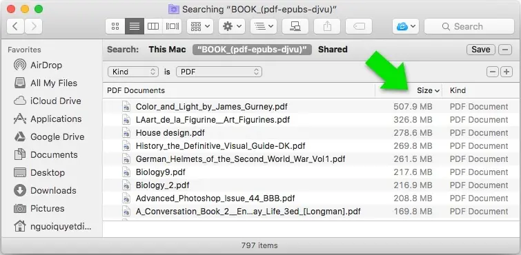 - Chỉnh các cột có bề ngang bằng với tên file, folder: ⌥ Dclick