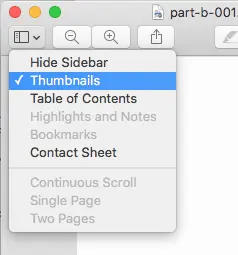 Lưu ý: Nếu cột bên phải không xuất hiện, bạn có thể bật nó lên bằng cách click lên icon ngoài cùng bên trái trên thanh công cụ và kiểm chọn Thumbnails