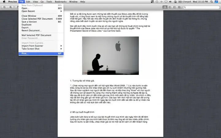 Ngoài việc xem file PDF rất tiện lợi trên Mac OS X, các bạn còn có thể tạo file PDF trên MAC OSX từ bất cứ file nào có thể in ấn được. Dưới đây là một vài ví dụ và hướng dẫn làm thế nào để tạo file PDF.