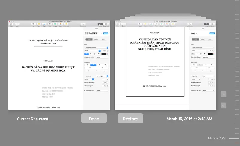 Nhu cầu phục hồi lại các phiên bản trước đó trở nên cần thiết, nhất là với những ai mới tập tành thao tác trên Pages khi chuyển từ Win sang Mac.