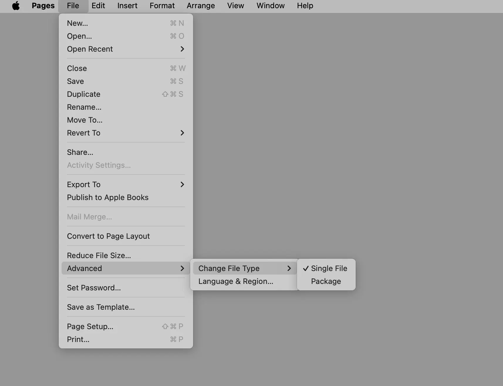 ... thì giải pháp hay nhất là save file ở dạng package bao gồm 1 file chính và các file links (image, video, fonts,..) để tránh cho file pages có dung lượng quá lớn sẽ . Tính năng này trước đây chỉ có ở các phần mềm dàn trang chuyên nghiệp như Indesign, illustrator, Affinity Designer và Affinity Publisher,.. với phần mềm soan thảo văn bản thì khá hiếm hoi.