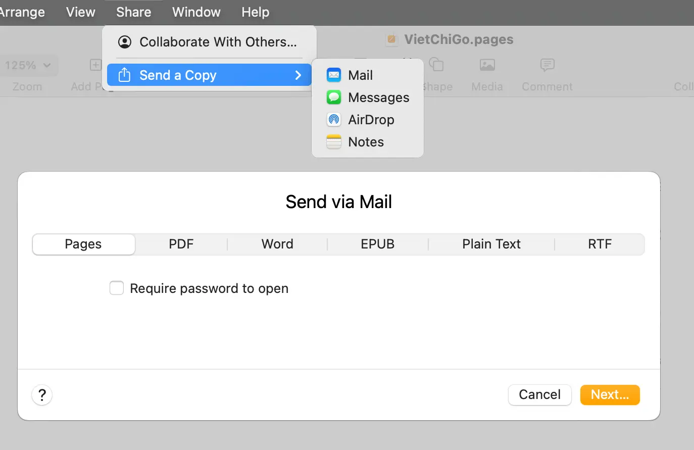 Cách 2 - Chọn Share > Send a Copy