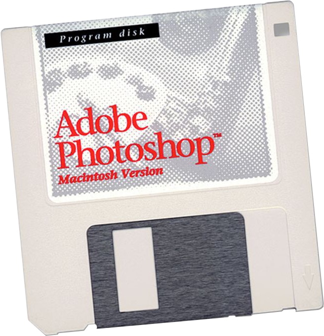 Ngày 19/2/1990, phần mềm Adobe Photoshop 1.0 dùng cho máy Apple, có dung lượng 728 KB, được phát hành ở dạng đóng gói, gồm một đĩa mềm và tài liệu hướng dẫn. 10 năm sau đó, Photoshop đã được bán ra hơn 3 triệu bản.