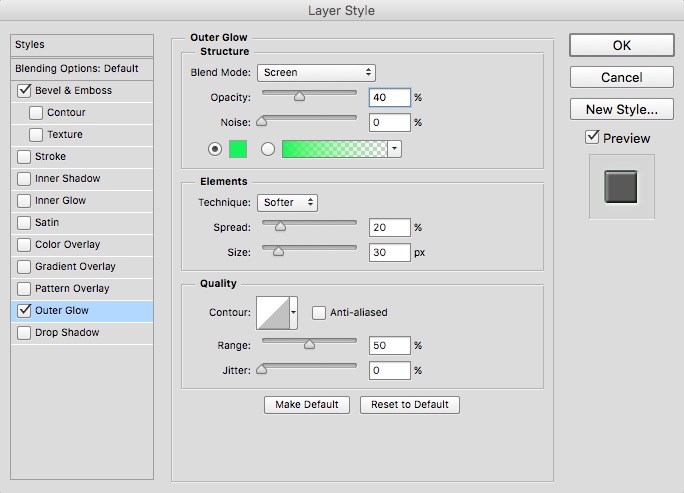 Áp Outer Glow để tạo hiệu ứng phát sáng