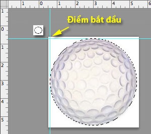 - Kéo đường guide từ thước áp sát trái banh (cạnh trên và cạnh trái)