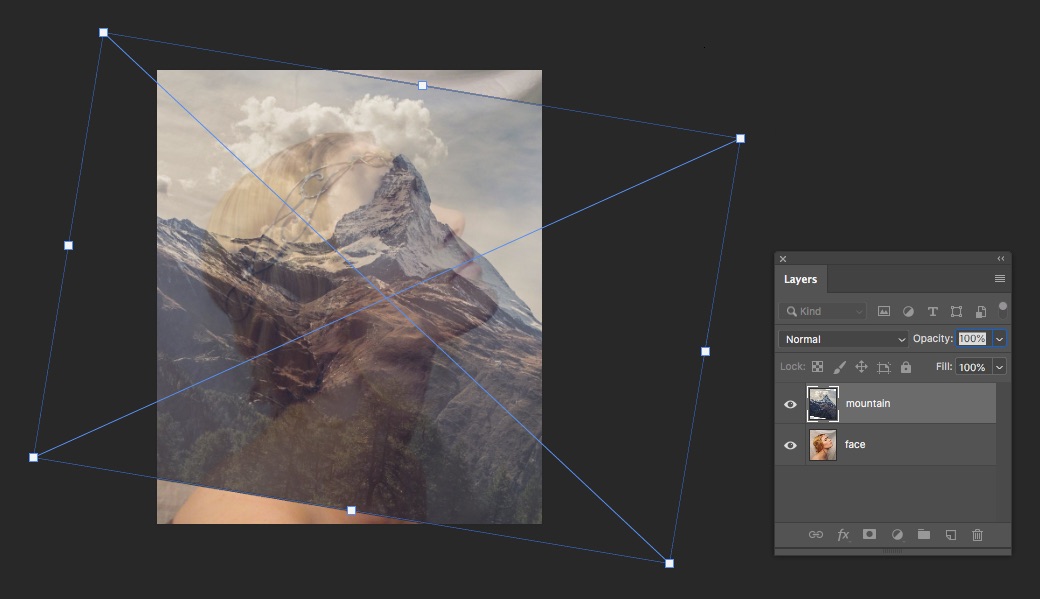- Kéo ảnh đỉnh núi và chỉnh ở vị trí thích hợp. Đây sẽ là layer mountain