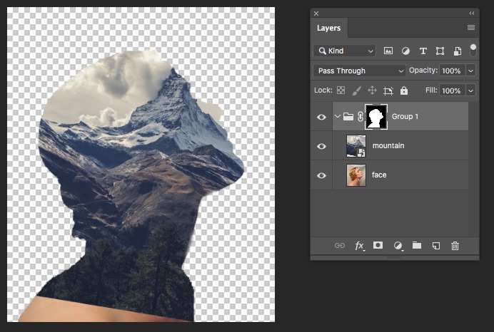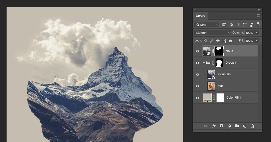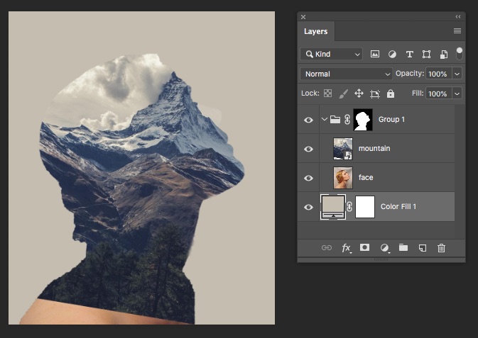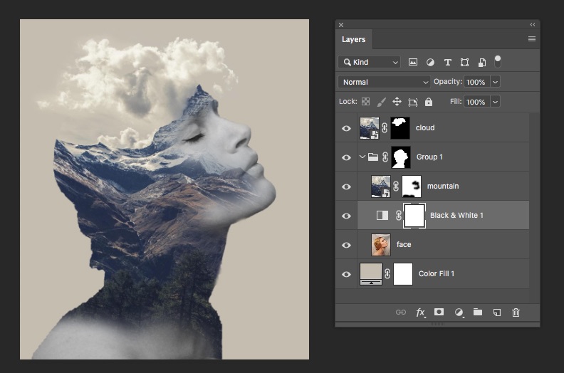 - Xóa bớt layer mountain để gợi 1 phần gương mặt lên: