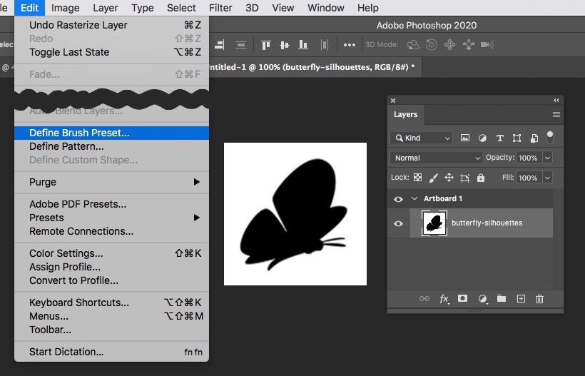 Bước 2: Tạo brush cánh bướm