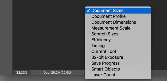 Trước tiên bạn cần phải biết cách ước lượng kích thước file trước và sau khi photoshop trong menu bottom > Document size (1 layer/layer thực tế)