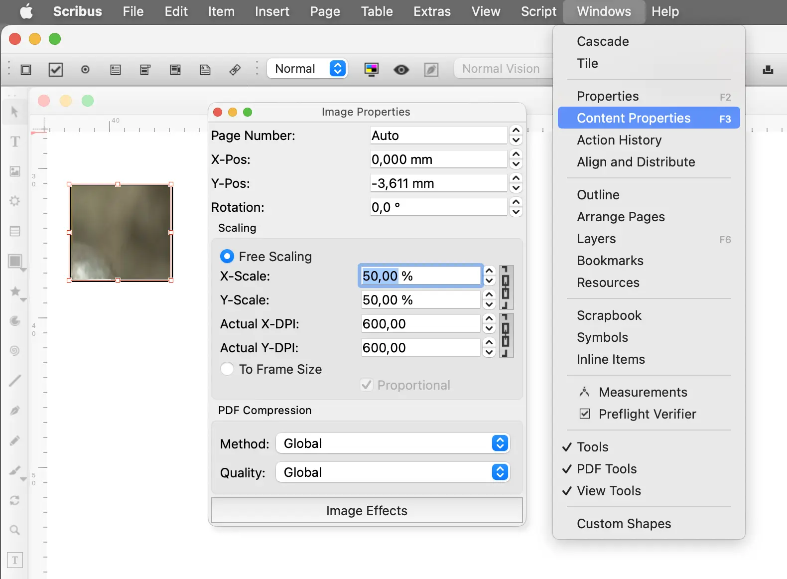 Tập hợp các thao tác ảnh raster trong Scribus