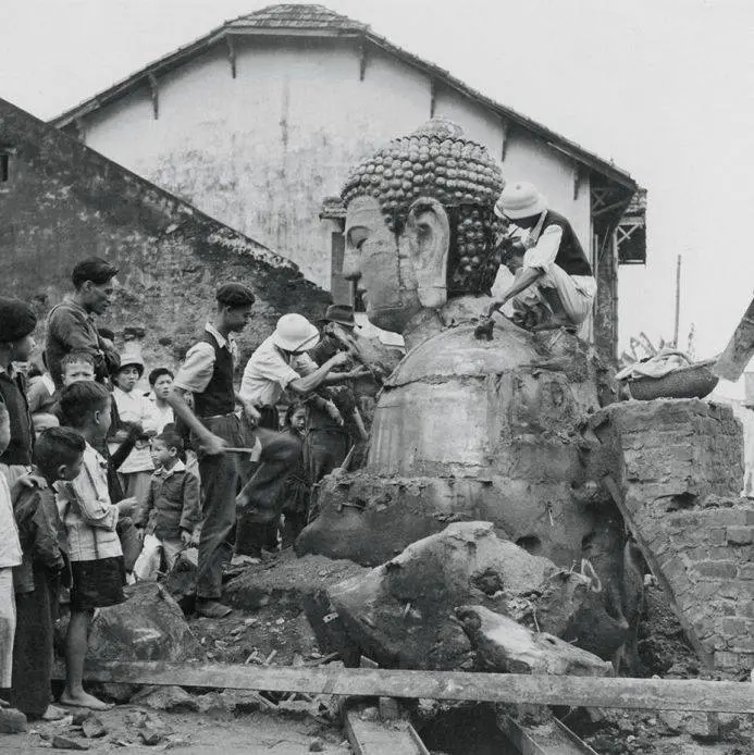 Đúc tượng Phật ở làng Ngũ Xã, Hà Nội năm 1952.