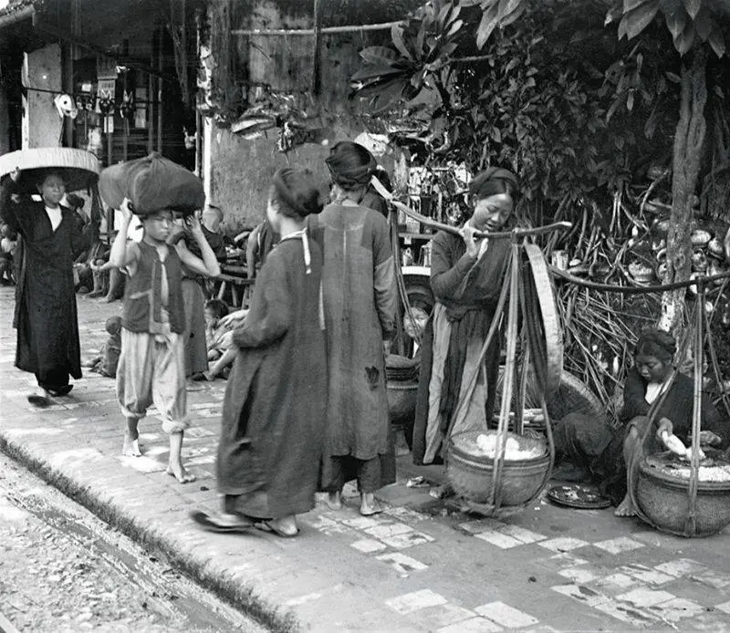 Trên một con phố thương mại tại Hà Nội khoảng năm 1922.